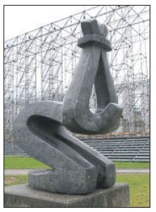 Strichzeichnung: Büste der Athena-Minerva, Relief über dem Hörsaaleingang des Hessischen Landesmuseums in Kassel von Christoph Nüsslein 1913/15. |